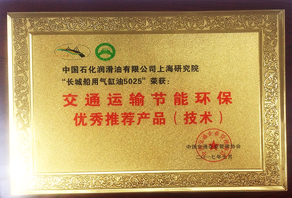 7月23-25日,2017年交通運輸企業節能減排宣傳推進活動交流總結大會在京召開,會上中國石化潤滑油有限公司上海研究院開發的長城船用氣缸油5025獲得交通部交通節能環保優秀產品獎。此次節能減排宣傳活動以“堅持綠色發展、建設美麗中國”為主題,是為貫徹落實全國交通運輸工作會議精神,配合2017年全國節能宣傳周和全國低碳日活動,依據交通運輸節能環保“十三五”規劃要求開展。