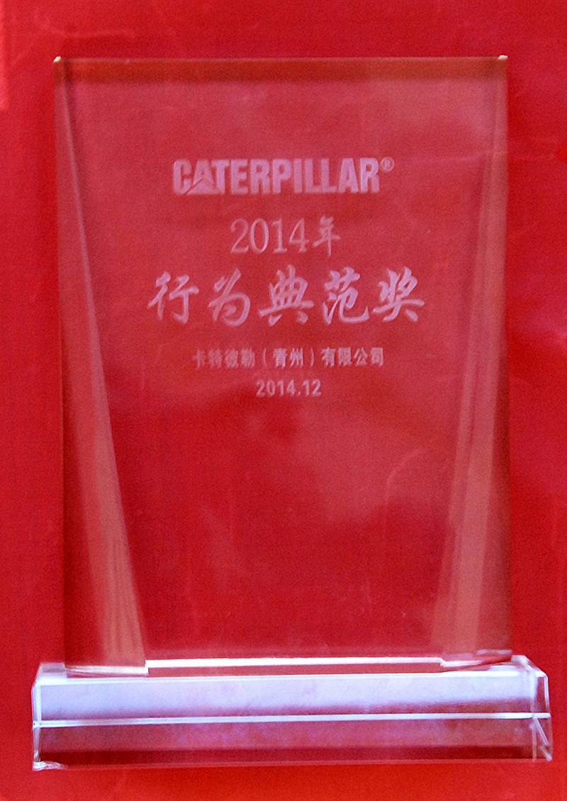 2014年獲卡特被勒有限公司“行為典范獎(jiǎng)”