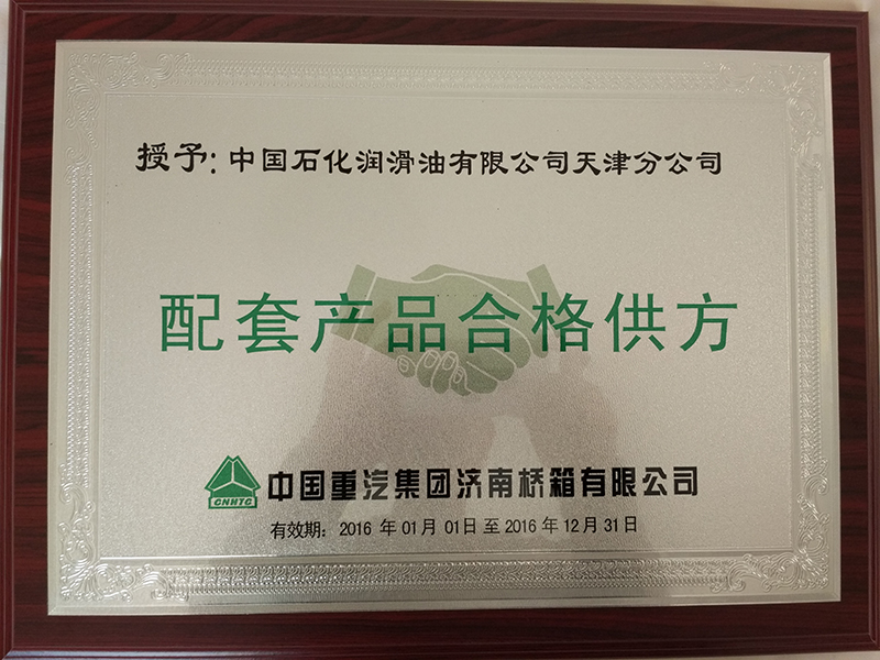 2016年被中國重汽集團濟南橋箱有限公司授予“配套產品合格供方”