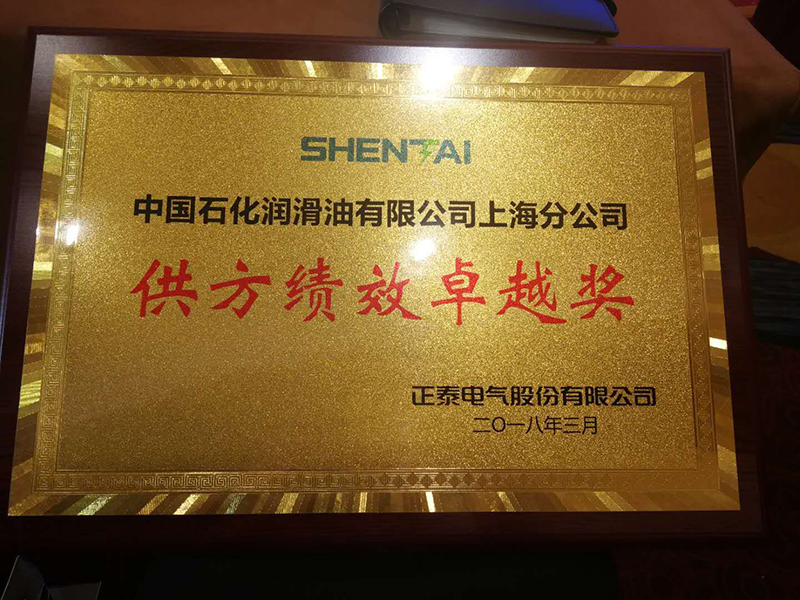2018年長城潤滑油獲正泰電氣“供方績效卓越獎”