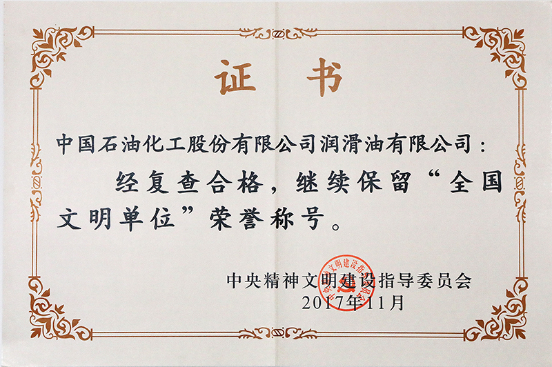 2017年11月全國文明單位復(fù)查合格證書