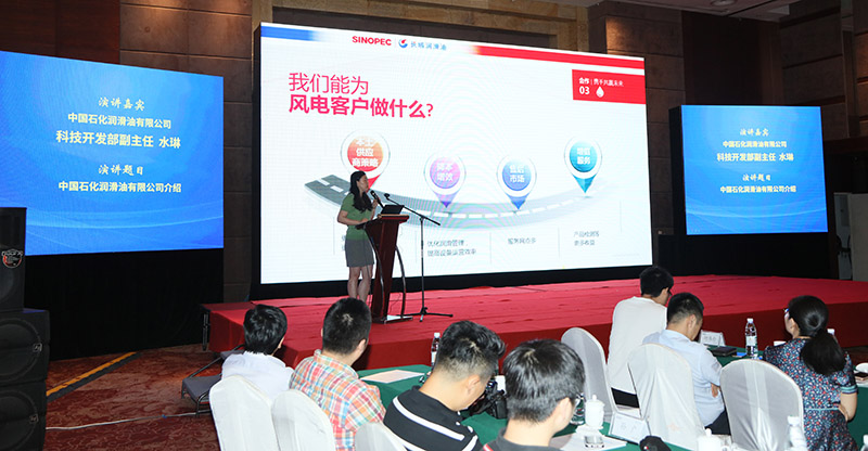 中國石化潤滑油有限公司科技開發(fā)部副主任水琳向與會來賓介紹中國石化潤滑油有限公司實力,歷數(shù)在航天、高鐵等行業(yè)的尖端應用以及在風電行業(yè)開發(fā)生產(chǎn)優(yōu)質(zhì)配套潤滑油產(chǎn)品所付出的努力。