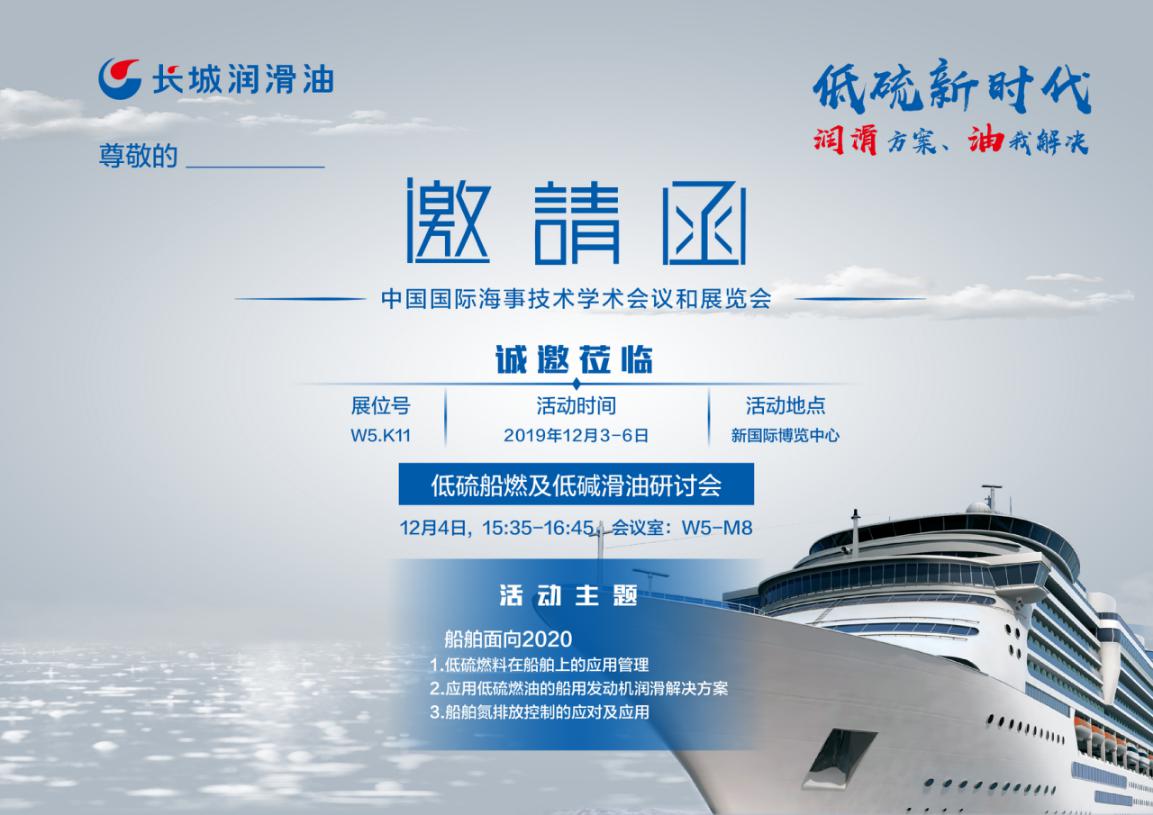 12月3日,第20屆中國國際海事展將在上海新國際展覽中心隆重開幕,也讓我們一起走近“海運重器”背后的“護航者”,解鎖中國石化長城潤滑油(W5,K11)等領先品牌的“潤滑黑科技”!值得關注的是,中國石化長城潤滑油“低硫船燃及低堿油研討會”將在12月4日15:35-16:45在新國際展覽中心會議室W5-M8隆重召開,期待以全面潤滑方案與您共赴“低硫新時代”之約!