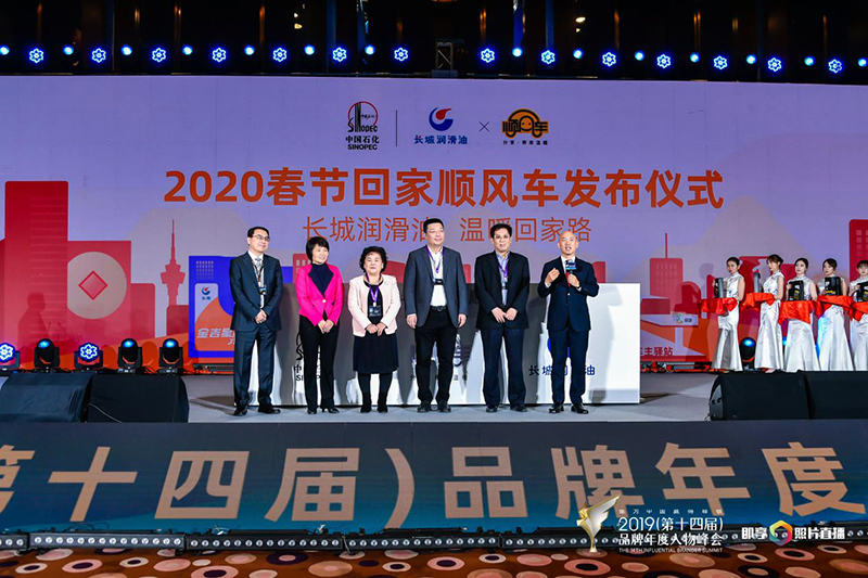 2019年12月18日,中國石化長城潤滑油攜手公益順風車,在京共同發布了“2020春節回家順風車”公益行動。中國石化長城潤滑油黨委書記、執行董事夏世祥,中國石化易捷銷售有限公司董事長、黨委書記葉慧青,廣西金嗓子集團董事長江佩珍,分眾傳媒董事長江南春,以及公益順風車發起人、品牌聯盟董事長王永等,將長城潤滑油注入本次公益活動的發布臺,共同點亮“2020春節回家順風車”。這組燈光LOGO也象征著眾多愛心企業及社會公眾都將參與進來,助力這場大型春節主題的公益活動。