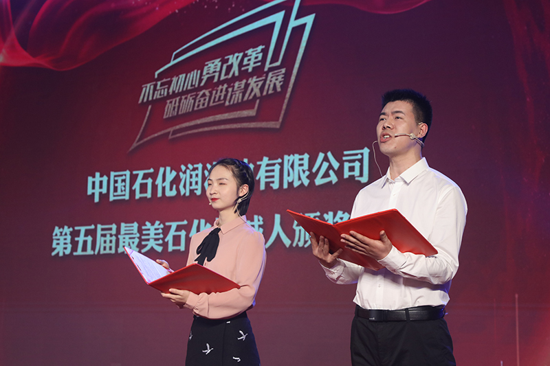 講述:“初心”的故事及頒獎環節,企業文化宣講員姜單單、趙恒講述《初心》故事。他們都來自空間潤滑技術開發中心,作為中國石化航天潤滑油事業的接力者,他們表示,每天都會走過從1962年就投用的老井蓋,走在前輩們走過的路上,一定要把“服務國家發展 打造世界一流”的初心與使命傳承下去。