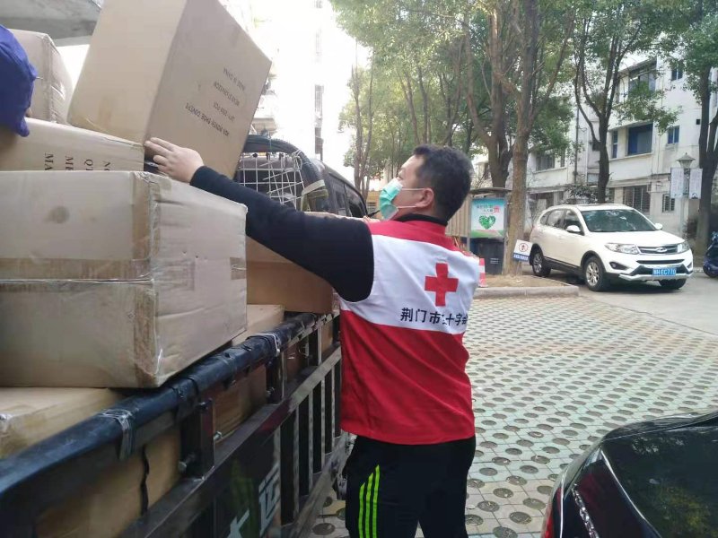 1月26日,大年初二的凌晨4點,荊門市深圳大道金潔醫(yī)療服務(wù)的倉庫旁,停著幾輛東風(fēng)皮卡,一群戴著口罩,穿著紅十字會志愿者服裝的人們正緊張有序忙上忙下的往車?yán)锇徇\醫(yī)療物資。陳俊峰和老戰(zhàn)友早早的來到這里,按要求做好個人防護措施后,以飽滿的熱情投入到了防護物資的搬運工作中:一箱箱急需的醫(yī)療口罩,一桶桶一百多斤的消毒液,還有一提提測溫儀、護目鏡……后背衣服濕了又干,干了又濕,每個人分工合作,有條不紊。從大年初二到正月十四,從荊門城南的掇刀區(qū)到城北的東寶區(qū),從設(shè)卡檢查到機動車禁行,不能開私家車了,就騎自行車,或者干脆走路步行去參加志愿服務(wù)。這是一幅幅安靜又熱鬧的場景,更是一場場生命與時間的賽跑!