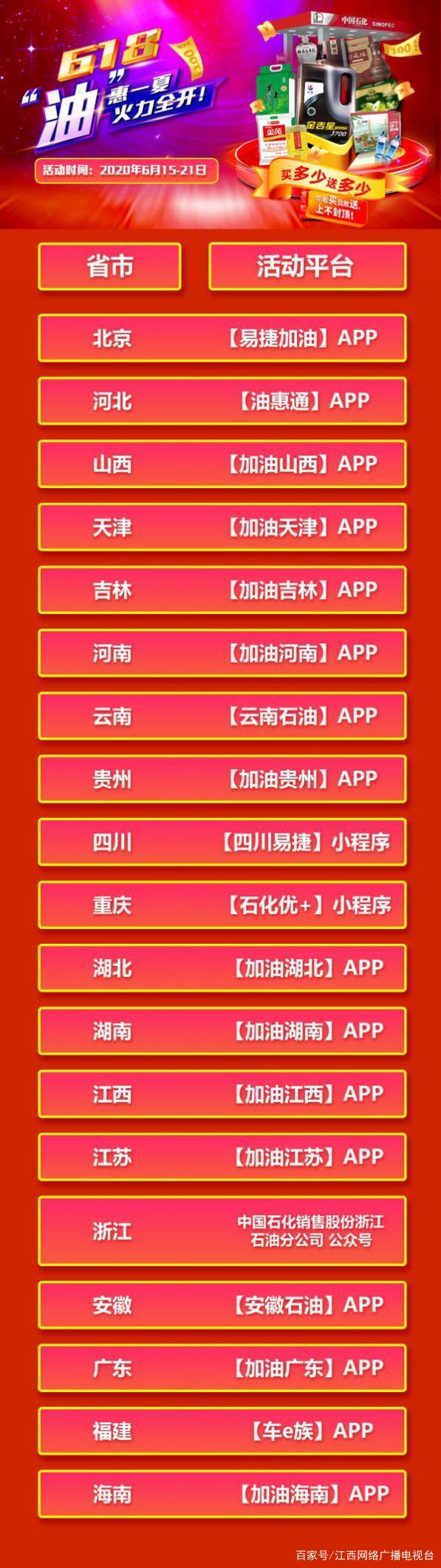 6月15-21日,長城潤滑油聯合中國石化加油站、易捷便利店,正式發起“中國石化618機油大促”。在北京、河北、山西、安徽、廣東、海南、湖北、江西、云南、貴州、河南等20余個省份的中國石化APP或微信公眾號上,買長城金吉星機油即送易捷消費券,買的越多,送的越多!