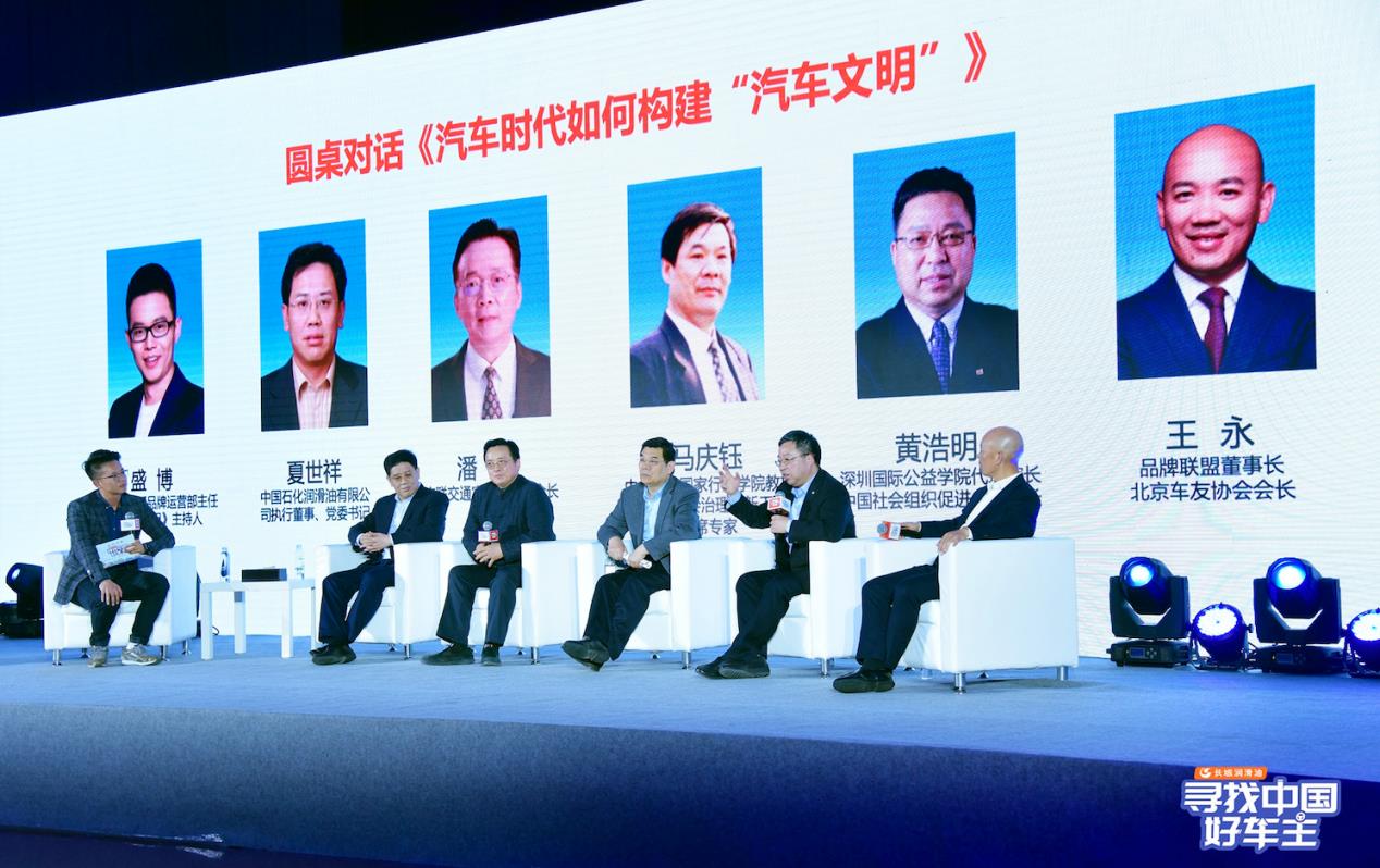 “尋找中國好車主”活動啟動儀式后,中廣聯交通宣傳委員會會長潘力,中央黨校國家行政學院教授博導、社會治理創新工程首席專家馬慶鈺,深圳國際公益學院副院長、中國社會組織促進會副會長黃浩,以及以及夏世祥、王永參與了《汽車時代如何構建“汽車文明”》主題圓桌對話。嘉賓圍繞如何構建汽車文明話題展開了深度探討和交流。北京交通廣播《都市調查組》節目主持人盛博主持了此次圓桌對話。