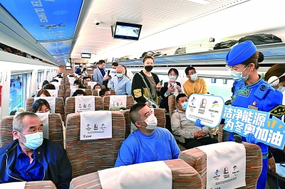 ????上午8時18分,復(fù)興號G2481次列車從站臺緩緩駛出,這是中國石化冬奧高鐵品牌專列的首次出發(fā)。該列車從北京北站出發(fā),途經(jīng)清河、張家口等8個站點(diǎn),最終到達(dá)內(nèi)蒙古包頭。車廂內(nèi)座椅、小桌板、行李架等部位融入了豐富的奧運(yùn)冰雪和中國石化品牌元素,通過全方位、立體化傳播冬奧文化和品牌形象,提升公眾冬奧關(guān)注度和參與度。“車廂里的冬奧氛圍很濃,中國石化讓更多人通過這種方式走進(jìn)冬奧。”乘客李女士告訴記者。