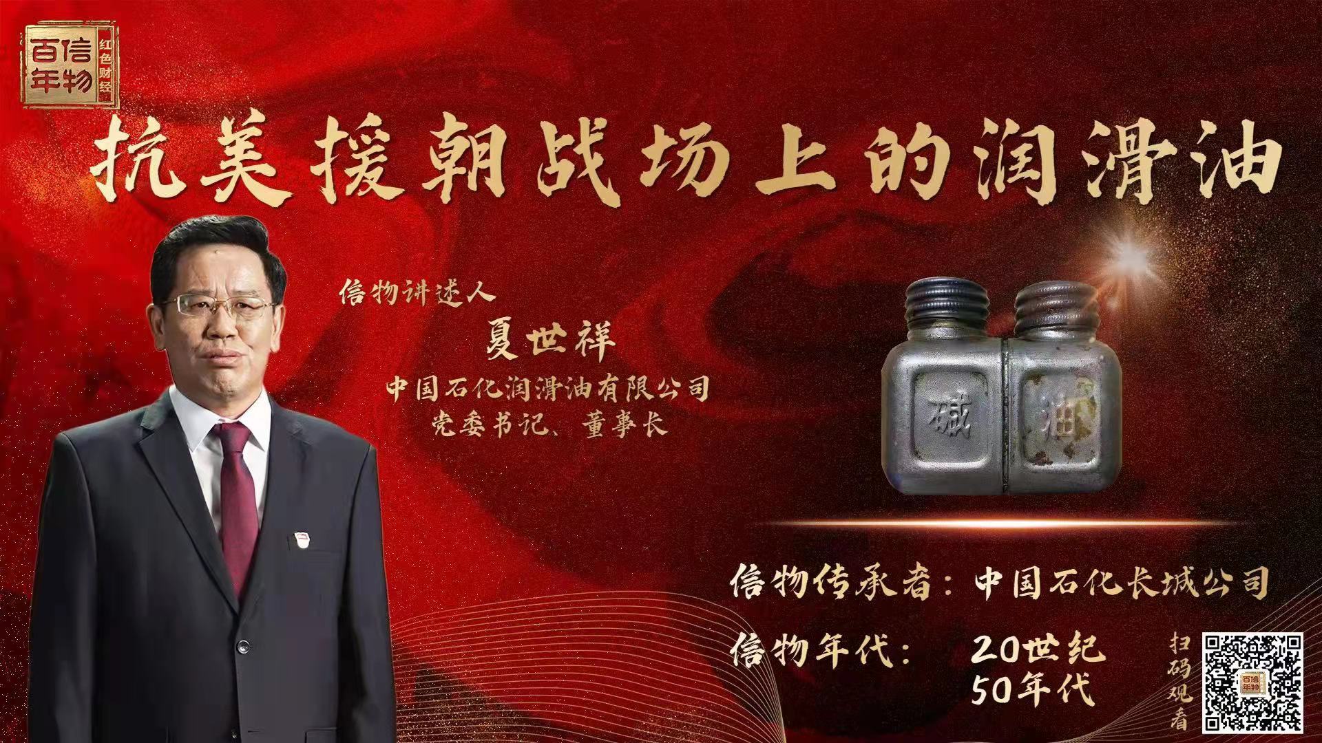10月27日22時,央視2套播出百集微紀錄片《信物百年》之一——《抗美援朝戰場上的潤滑油》。本集的主題是“祖國需要高于一切”,揭秘了抗美援朝戰場上的潤滑油,回顧中國石化潤滑油產業報國的不平凡歷史。