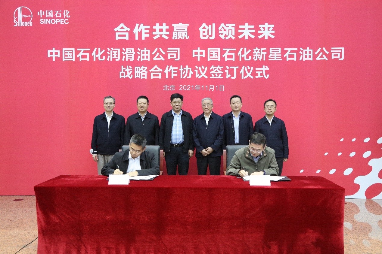 11月1日,中國石化潤滑油有限公司與中國石化集團新星石油有限責任公司在京簽署戰略合作協議。潤滑油公司黨委書記、董事長夏世祥,總經理茍連杰,集團首席專家、潤滑油公司副總經理趙江,副總經理張春輝;新星石油公司執行董事、黨委書記黨力強,總經理劉世良,黨委副書記、監事韓志國,副總經理國殿斌等出席簽約儀式并見證簽約。潤滑油公司副總經理張春輝、新星石油公司副總經理國殿斌代表雙方簽約。