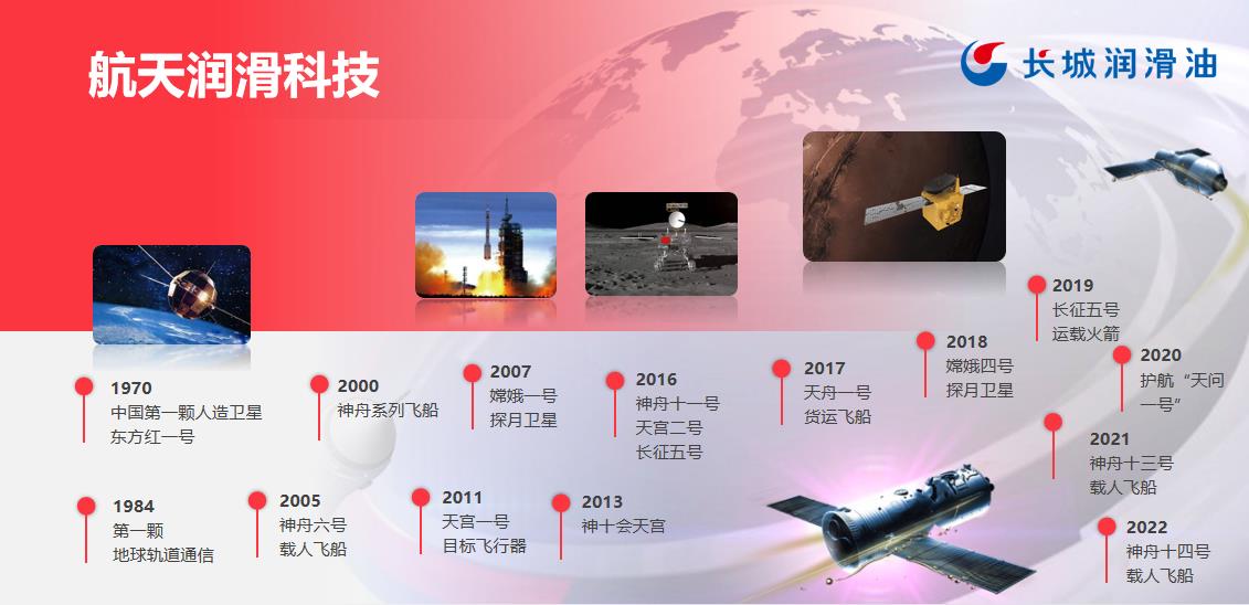 從中國第一顆人造衛星東方紅一號,到神舟系列飛船、嫦娥探月衛星,再到如今中國空間站的建設,長城潤滑油一路攻堅克難,用高質量潤滑保障踐行航天使命,開辟出了一條屬于中國的航天潤滑油之路。