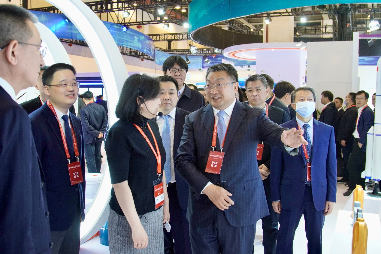 中國石化股份公司高級副總裁劉宏斌(中)視察長城潤滑油展臺