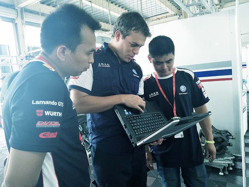 作為賽事冠名贊助商和車隊服務商,長城潤滑油從汽修一線邀請汽車修理工師傅現場觀摩比賽,親自感受長城潤滑油金吉星全程助力上海大眾333車隊馳騁賽場的高端潤滑技術,兩位汽修工代表分別是來自廣東東莞的楊進、福建廈門的林廈廈,他們隨長城潤滑油工作人員,穿上上海大眾333車隊隊服,走進賽車休息間,與車手和賽車機械師零距離進行交流。他們表示:作為一名汽車維修技師,非常喜歡這個行業,能現場觀摩參與調校賽車,可以說是一個維修技師的最高追求與夢想。在日常的修車中,一直信賴長城金吉星機油,這次看到長城潤滑油冠名CTCC房車賽,長城金吉星更是為上汽大眾333車隊提供從油品到技術的全面潤滑保障,真的為國產機油自豪。拍了很多照片分享給私家車客戶,讓他們感受一下長城潤滑油的賽車基因。