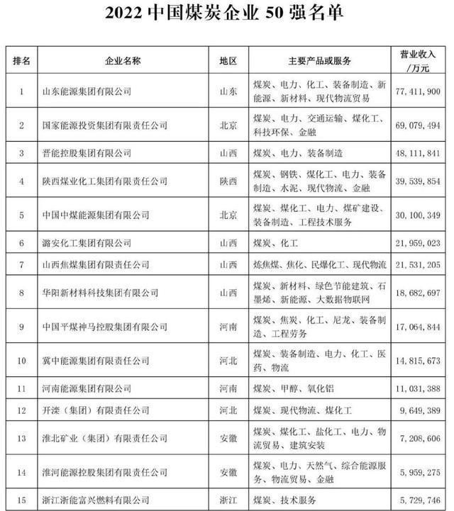 為提高行業凝聚力和社會影響力,發揮骨干企業示范帶頭作用,中國煤炭工業協會參照國際通行做法,在連續19年發布的基礎上,通過企業自主申報與中國煤炭工業協會統計數據相結合的方式,按申報企業2021年度營業收入為標準排出了2022中國煤炭企業50強。