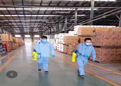 (圖:中國石化長城潤滑油員工正在進行廠區消殺任務)