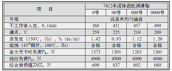長城牌7412半流體齒輪潤滑脂是以有機稠化劑稠化合成油,并加入極壓、抗氧、抗腐蝕等多種添加劑精制而成。按稠度等級分為0、00、000、0000四個牌號。