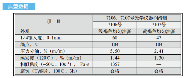 長城牌7106、7107號光學儀器潤滑脂是以混合皂稠化劑稠化合成油,并加入防銹、