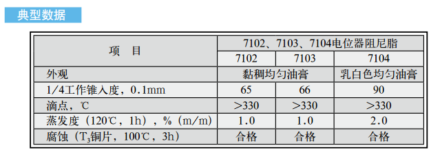 長城牌7102、7103、7104電位器阻尼脂是以無機稠化劑稠化合成油,并加入防銹、