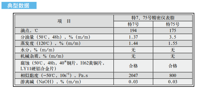 城牌特7、75號精密儀表脂是以特定的稠化劑稠化合成精密儀表油精制而成。
