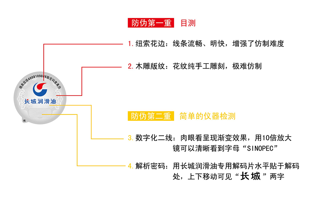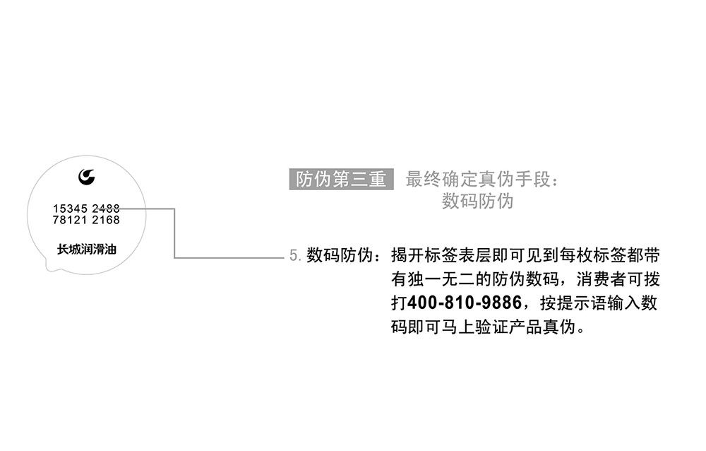 為了讓您真正享受到長城潤滑油引發的卓越表現,在原包裝上使用了新版防偽標簽,此標防偽技術新穎獨特,國內先進。請參見下圖的使用說明,購買原廠正品,享受最佳駕馭感受。